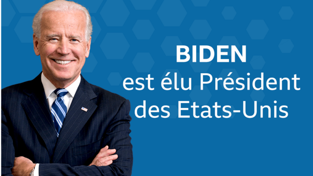 Légende image, Joe Biden remporte l'élection présidentielle américaine Le candidat démocrate Joe Biden a remporté l'élection présidentielle américaine.