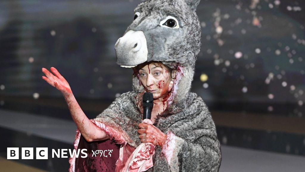 የ57 አመቷ ኮሪን ማሲየሮ በመጀመሪያ ላይ አህያ የሚመስል ኮትና በደም የተነከረ ቀሚስ ለብሳ የነበረ ሲሆን መድረክ ላይ ከወጣች በኋላ ግን እርቃኗን ቀርታለች።