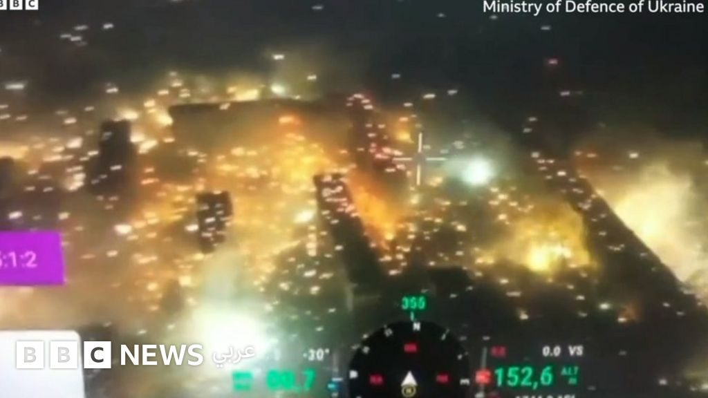 ولم يتضح بالضبط متى وقع الهجوم المزعوم. لكن اللقطات التي شاركتها أوكرانيا، والتقطتها طائرة بدون طيار، أظهرت المباني الشاهقة التي اشتعلت فيها النيران.