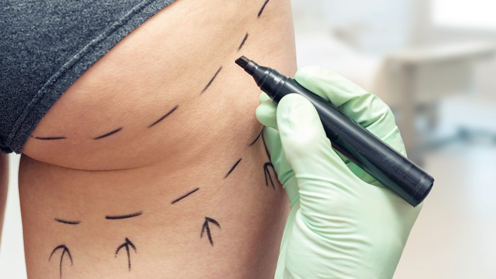 (Image: Plastic surgeon marking a woman’s body for plastic surgery. Credit: Getty Images)