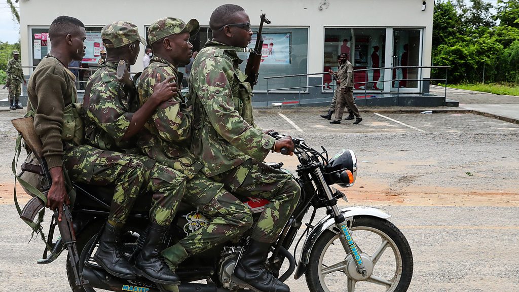 (Image: Mozambican soldiers on a motorbike in the streets of Palma, April 2021. Credit: European Pressphoto Agency/Joao Relvas)