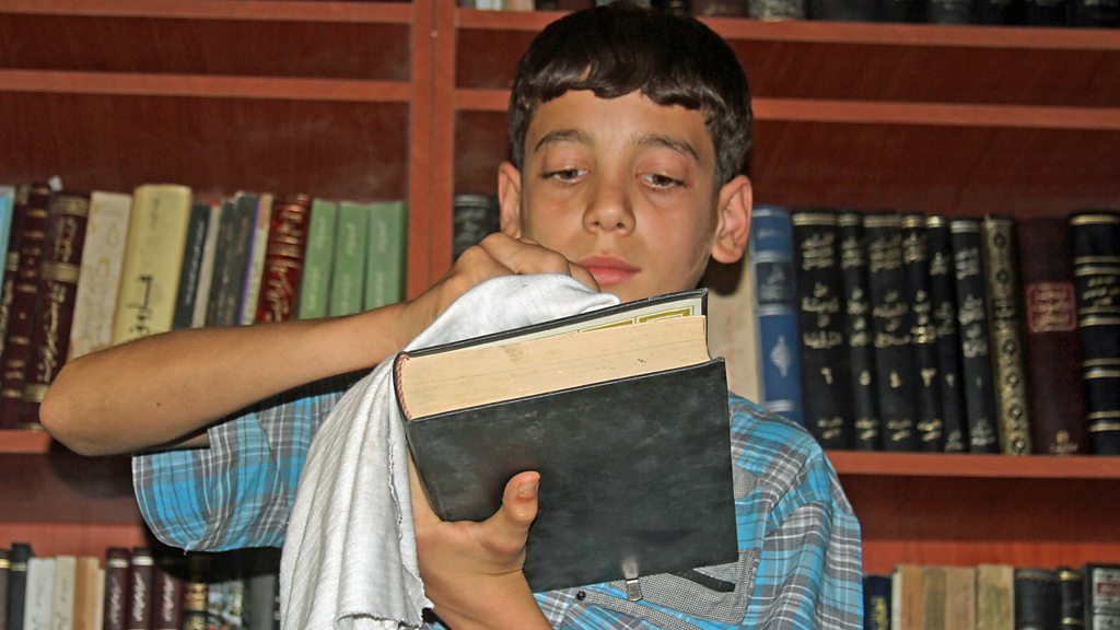 (Image: 14 year-old Chief Librarian Amjad in the Secret Library, Credit: Daraya Council Media Team)