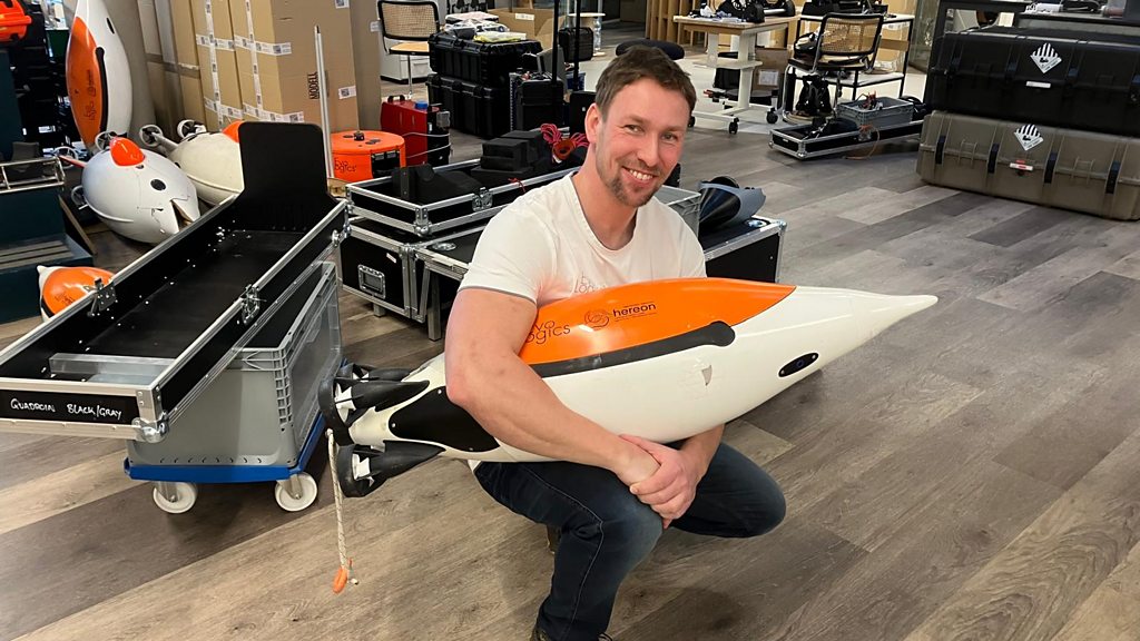 (Image: Fabian Bannasch, CEO of Evologics,holding a robotic "penguin". Credit: BBC)