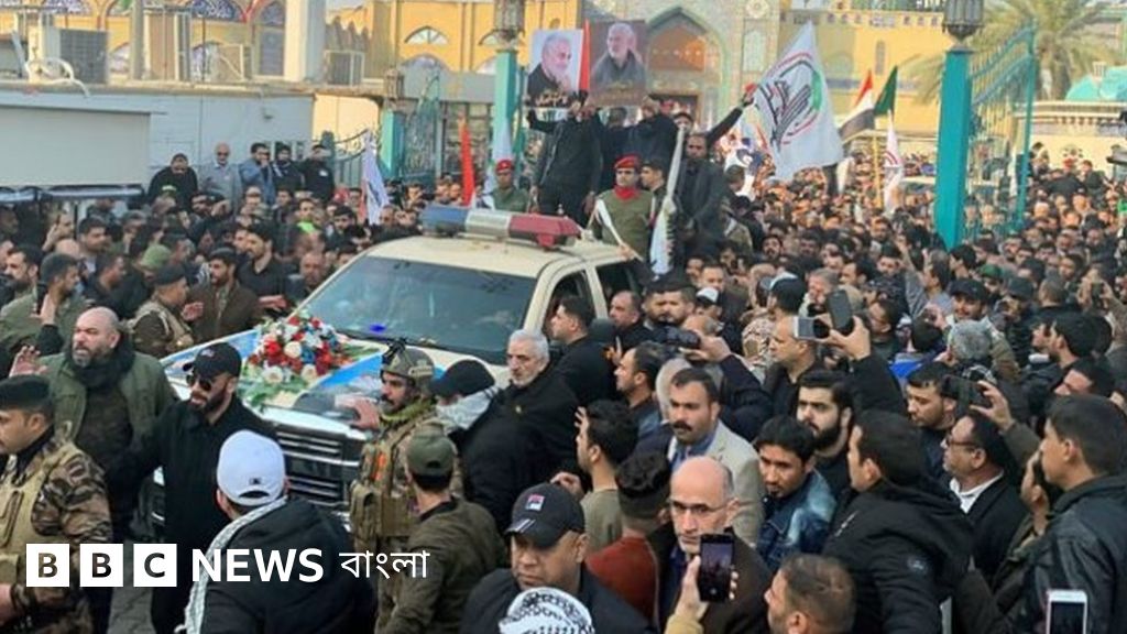 ইরাকের রাজধানী বাগদাদে বৃহস্পতিবার মার্কিন হামলায় নিহত হওয়ায় ইরানি জেনারেল কাশেম সোলেইমানির জানাজায় যোগ দিয়েছে অসংখ্য মানুষ।