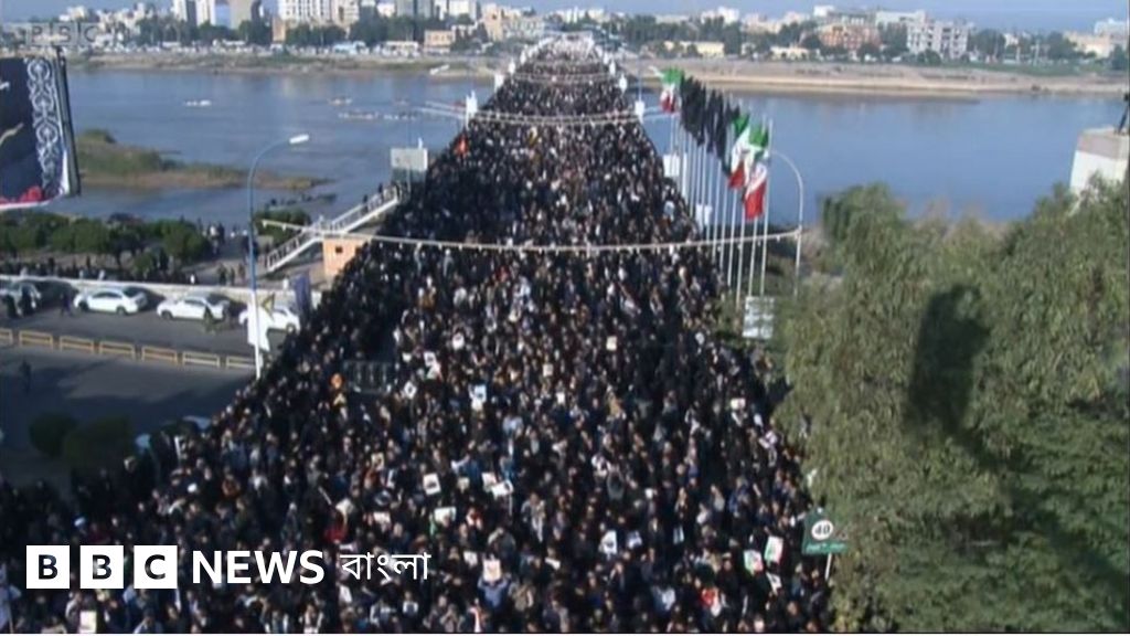 ইরান প্রেসের তোলা ভিডিওতে দেখা যাচ্ছে, আহভাজ শহরে তার শেষকৃত্যানুষ্ঠানে অংশ নিয়েছে হাজার হাজার মানুষ।