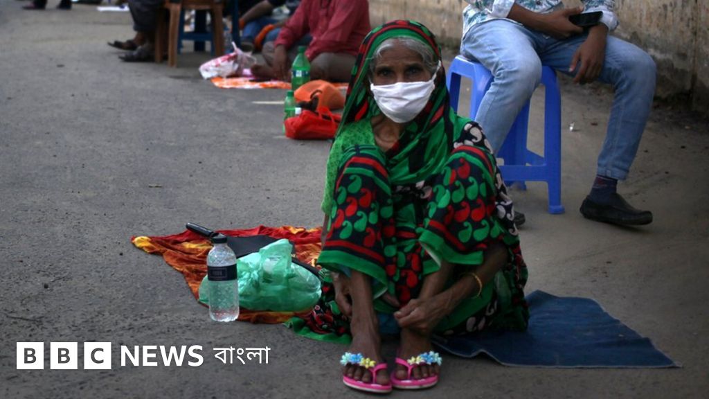 ছবির ক্যাপশান, বাংলাদেশে একটি হাসপাতালের সামনে কোভিড-১৯ পরীক্ষার জন্য অপেক্ষারত লোকেরা