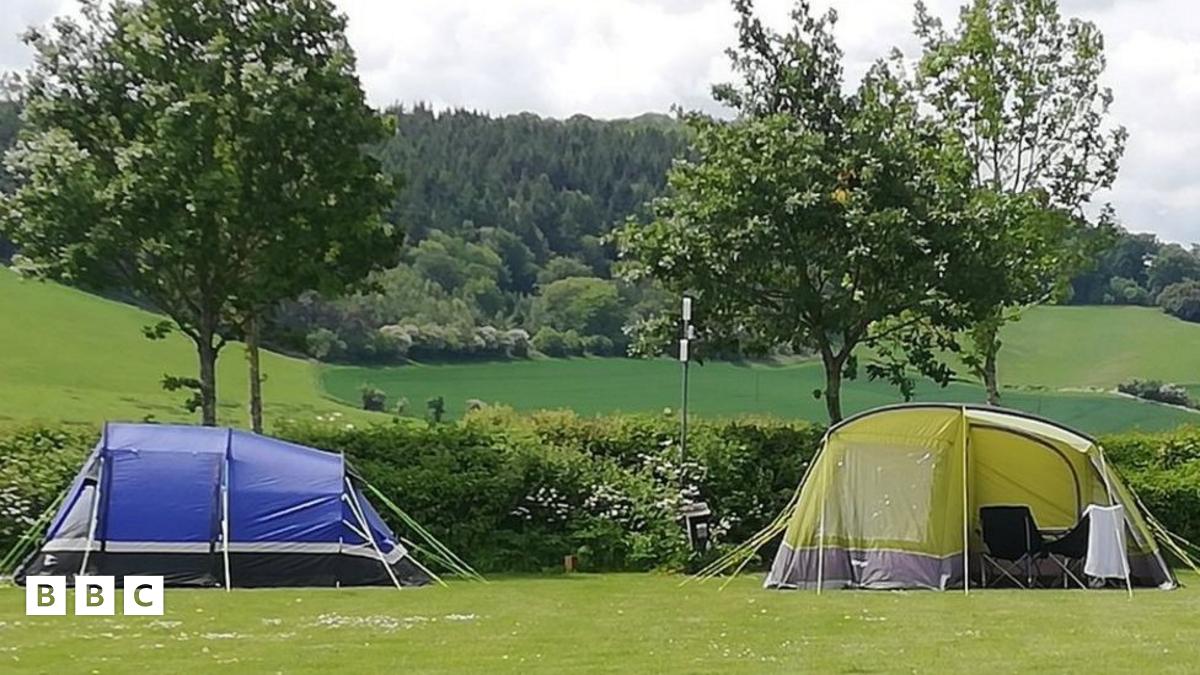 Mae Jeff Revill, sydd â maes gwersylla ar y ffin rhwng Cymru a Lloegr, yn gobeithio am dywydd da i helpu ei fusnes