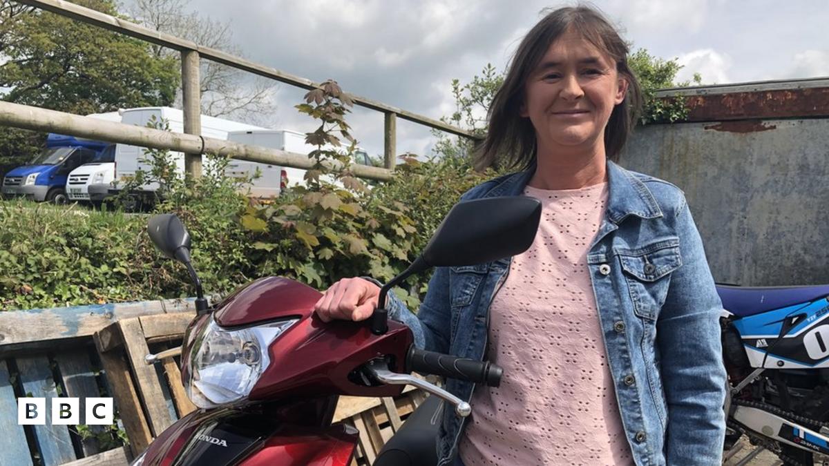 Felly mae Nicola wedi cysylltu â chynllun trafnidiaeth cymunedol am help. Mae hi nawr yn rhentu moped er mwyn cyrraedd y gwaith.