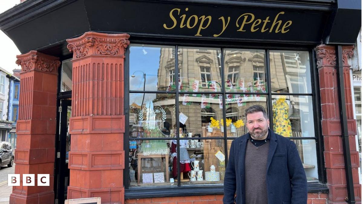 Yn y cyfamser mae Siop Lewis yn Llandudno ar fin cau a'r perchennog, Trystan Lewis, yn gwerthu'r stoc am hanner pris a llai.