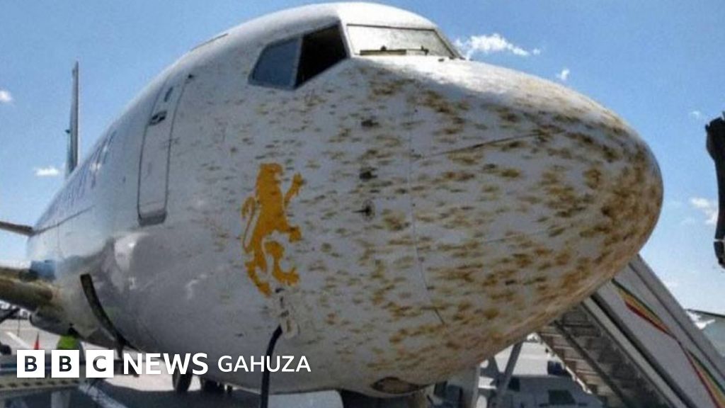 Iyi ndege yahuye n'ibihori byinshi cyane byirunda kuri moteri no ku kizuru cy'indege.