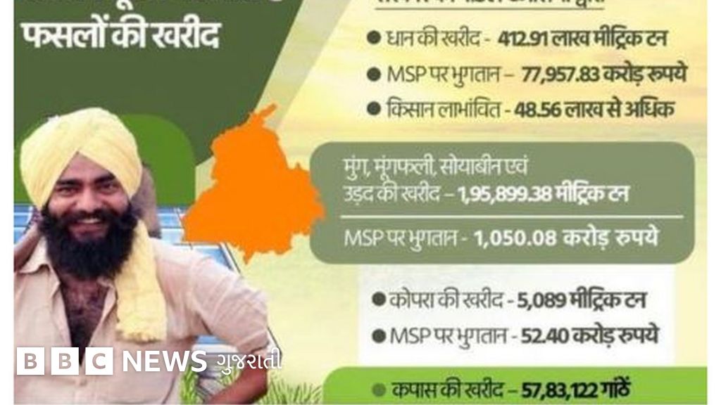 તસવીરમાં પંજાબના એક ખુશાલ ખેડૂત અને ખેતપેદાશોના ભાવ તથા એમએસપી વિશેની સમાગ્રી હતી.