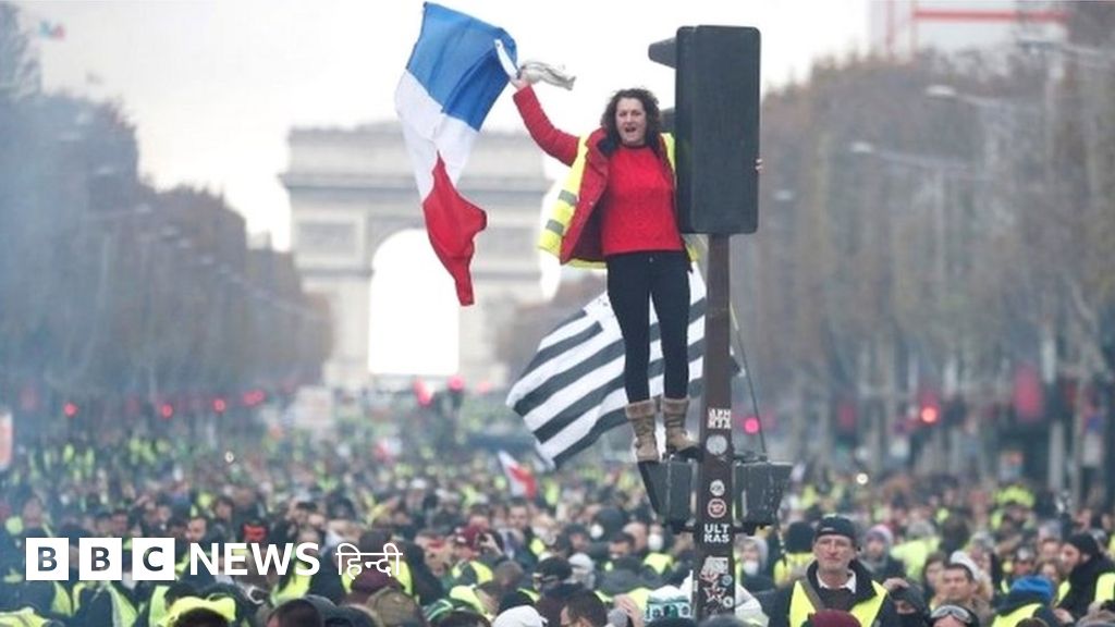 कुछ प्रदर्शनकारियों ने पटाखे और सड़कों के किनारे फुटपाथ से पत्थर निकालकर पुलिस पर फेंके. वे राष्ट्रपति इनमैनुएल मैक्रों के ख़िलाफ़ नारे लगा रहे थे और उनके इस्तीफ़े की मांग कर रहे थे.