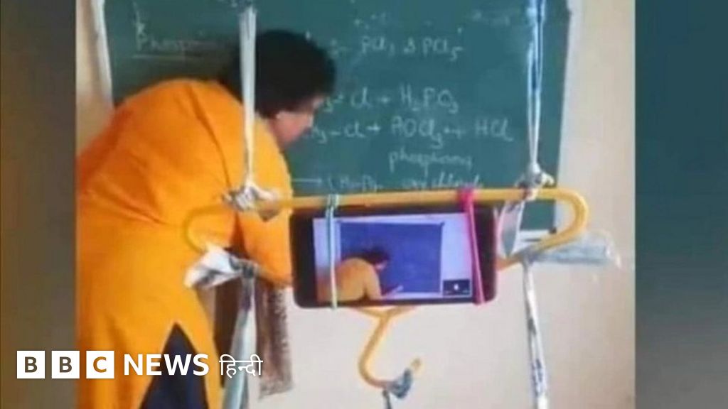 ऐसे में एक अध्यापिका ने ऑनलाइन क्लास के लिए हैंगर, कुर्सी, कपड़े की कतरन से ट्राइपॉड बना दिया.