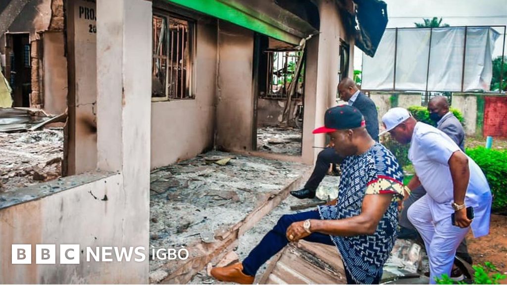 Aka na-achị Anambra steeti bụ Chukwuma Soludo agaala njem nleta n'isi ụlọọrụ Nnewi South ebe ahụ ndị ekperima wakporo n'abalị Wenezde, Maachị 30, ma gbaa ya ọkụ.