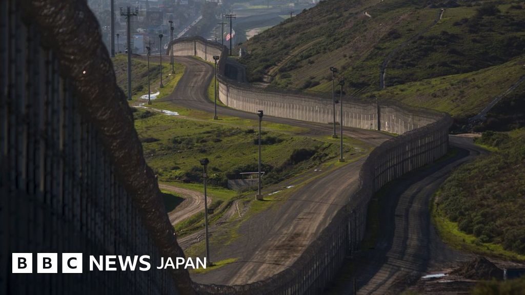 画像説明, 国境の一部地域はすでに壁で遮られている。写真は米カリフォルニア州