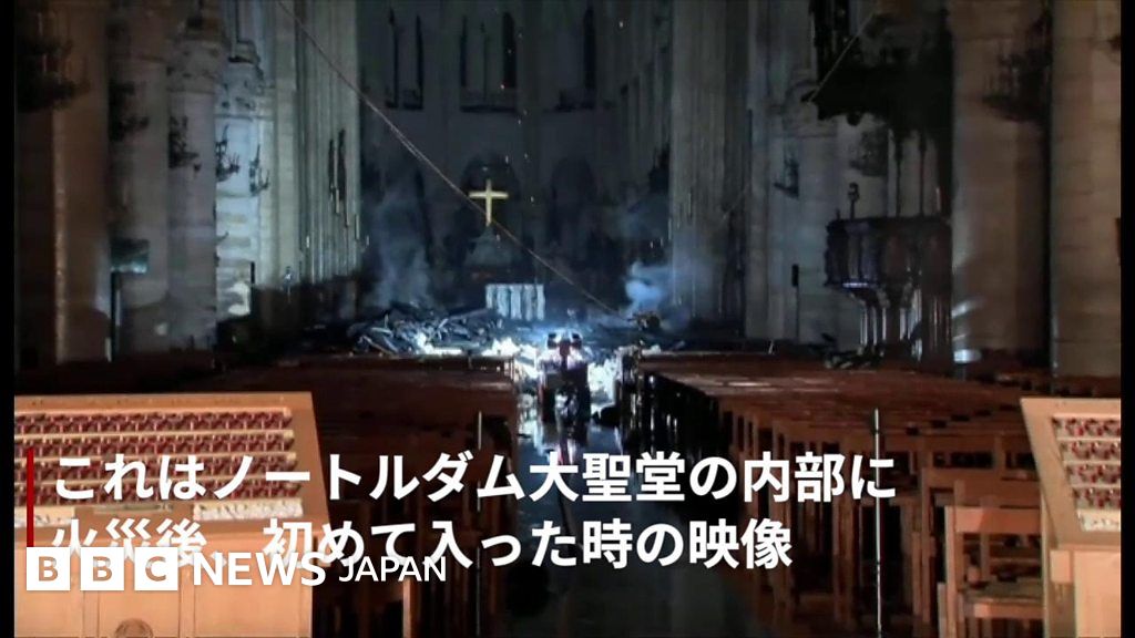 ノートルダム大聖堂、初の被害映像 火災の影響は