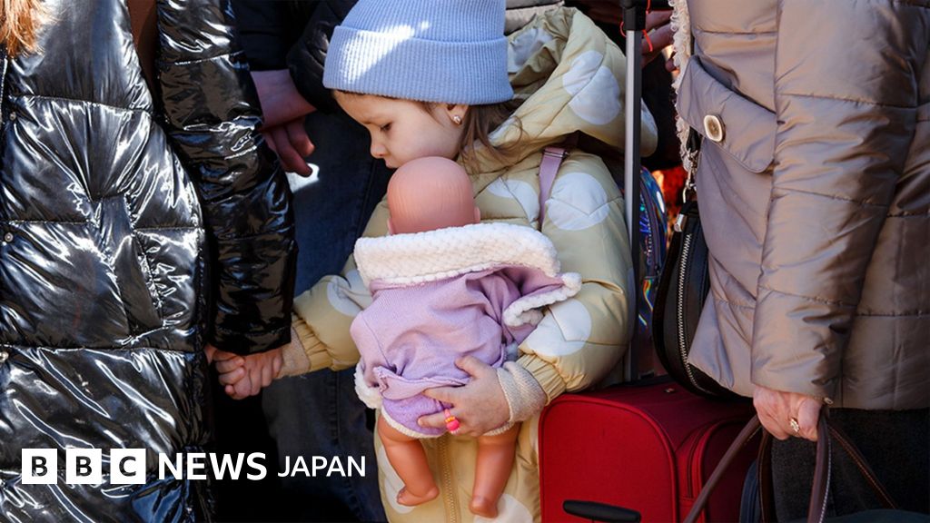 ロシアの砲撃がひどくなり、輸送車列が接近している中、多くのウクライナの親たちが幼い子どもたちを連れて家を出ることを決意した。