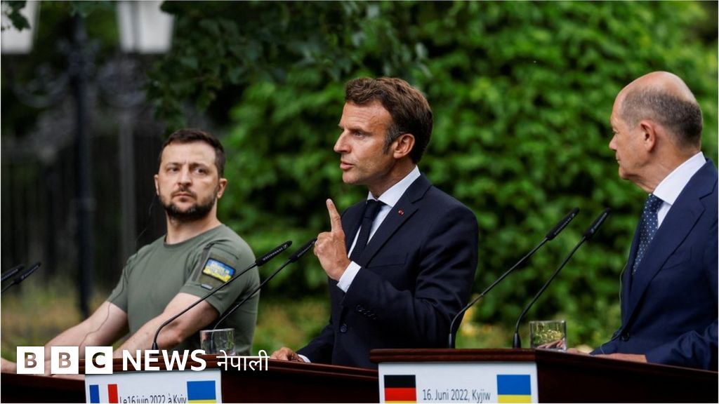 माँक्रोले किएभ पुगेका युरोपेली नेताहरू 'तत्काल' ईयूमा जोडिन युक्रेनलाई उम्मेद्वार हैसियत दिन सहयोगी रहेको बताएका छन्।