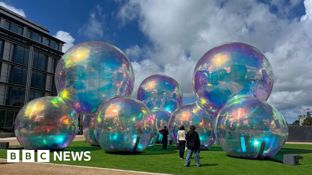 BBCLarge iridescent bubbles which are part of an art display are on show in Jersey.