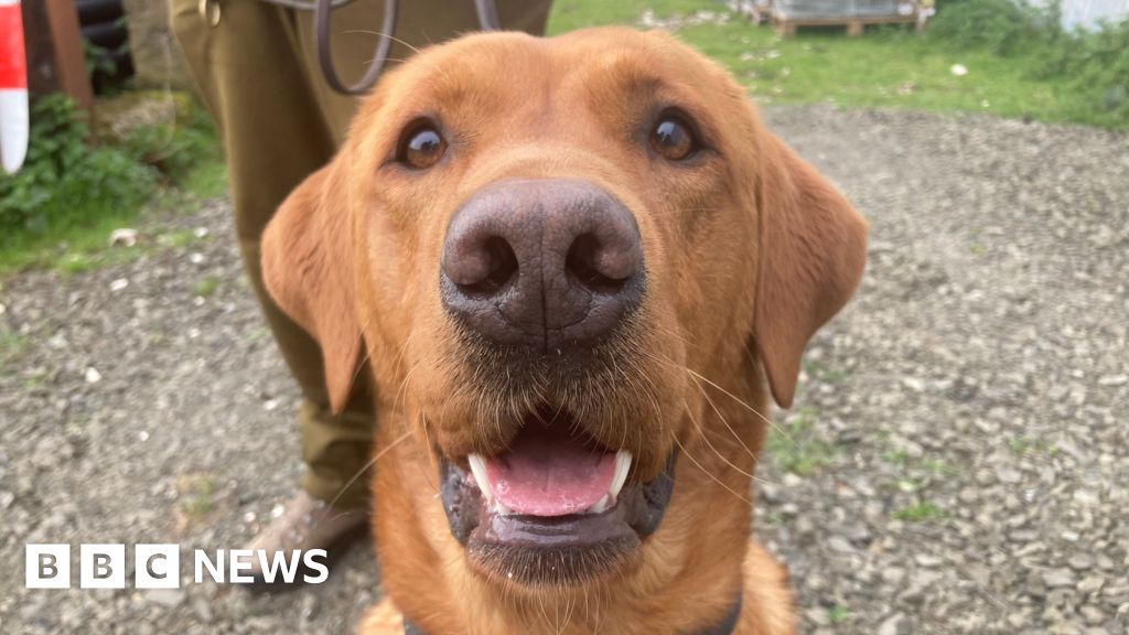 Woody, the two-year-old Fox Red Labrador, will help trace any remaining ferrets on the island.