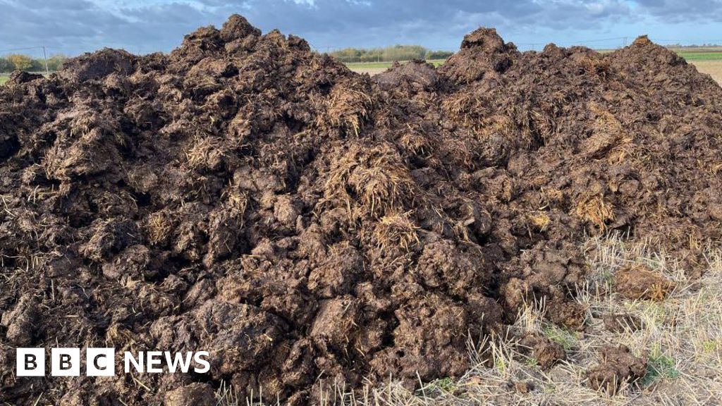 Crews were called to manure alight in a field on Haughley Road, Harleston, on the border between Norfolk and Suffolk, near Stowmarket, at 14:30 BST on Tuesday.
