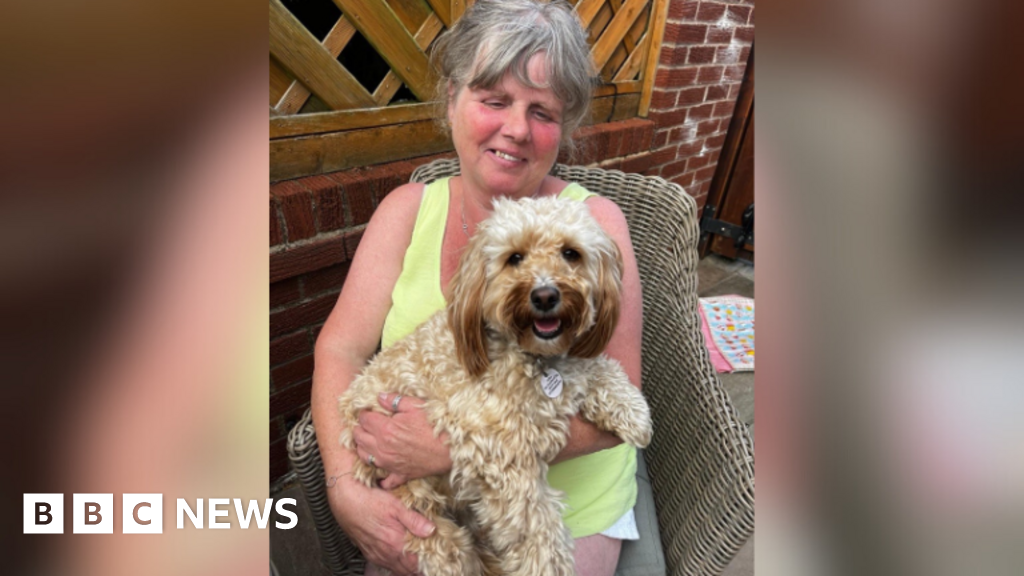 Liz O'Brien, 64, was at her home in Leigh, Greater Manchester, when she heard the driver walking into the yard where her three-year-old Cavapoo Alba was roaming.