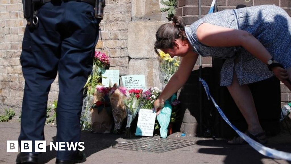 Kimaai Barker, 32, is standing by the flowers left in tribute outside the building paying tribute to those who have been injured.