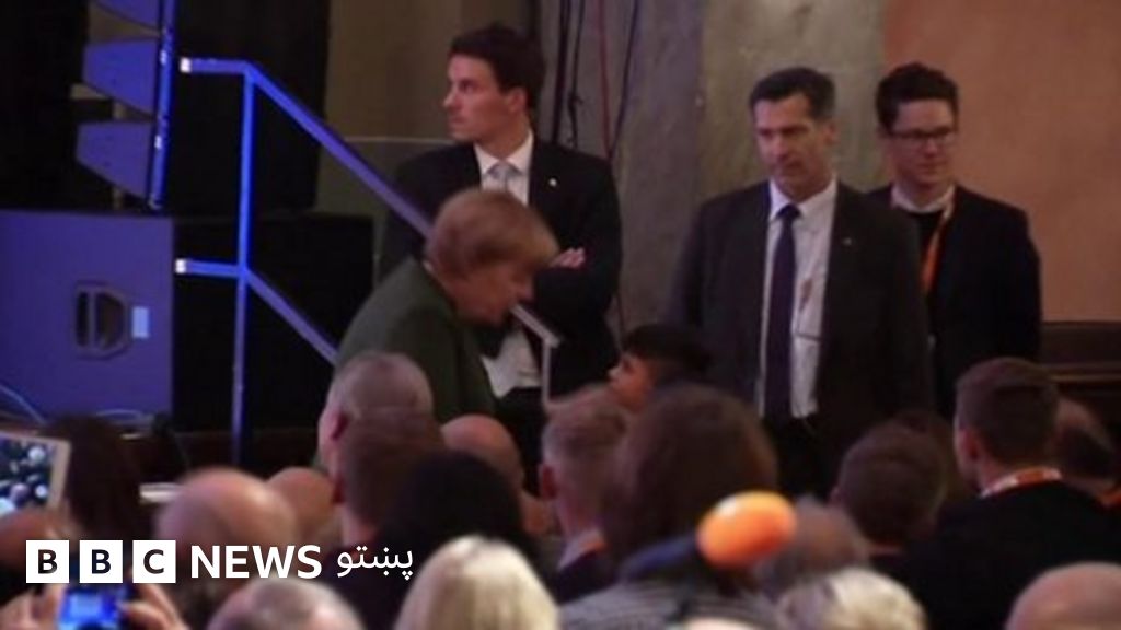 د کډوالو په اړه د ګوند په غونډه کې یو افغان ماشوم د جرمني له لومړۍ وزیرې انګلا مېرکل مننه او ترې د لاسونو د لمس کولو غوښتنه وکړه