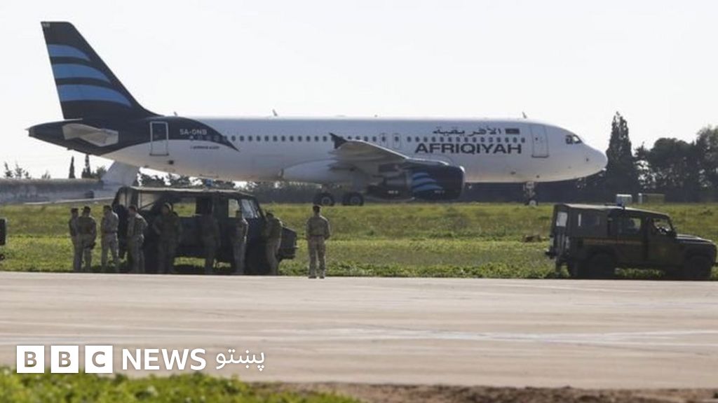 د لیبیا یوې الوتکې تښتولو پېښه چې مالټا کې کېناستو ته اړایستل شوې وه، پای ته رسېدلې. رپوټونو کې ویل شوي دوه کسان، چې الوتکه یې ولکه کې وه، اوس تړلي لاسونه له الوتکې ایستل شوي دي.