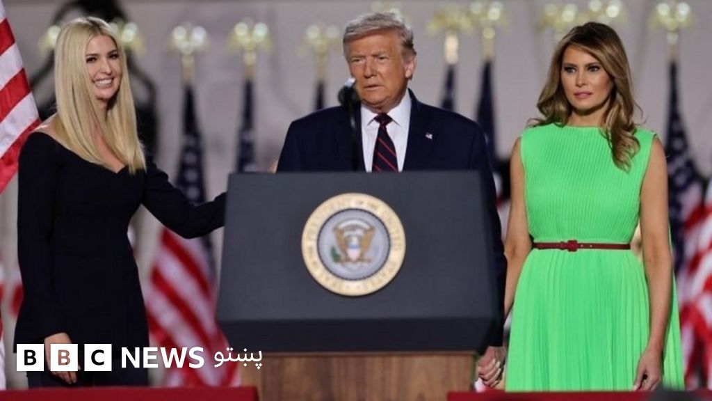 ولسمشر ټرمپ له سپینې ماڼۍ د جمهوریپال ګوند ملي غونډې یا کنوانسیون ته د خپلې نوماندۍ منلو وینا کې خپل سیال د امریکا "د عظمت ورانوونکی وباله. "