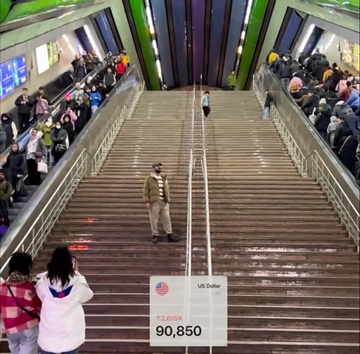 «آزاد»، خواننده معترض، همزمان با گذشتن نرخ دلار از ۹۰ هزار تومان، ویدیویی از آوازخوانی در مترو تجریش منتشر کرده است. او ترانه اعتراضی «بیا بنویسیم» را که برگرفته از ترانه مهستی است روی راه پله مترو تجریش میخواند.
