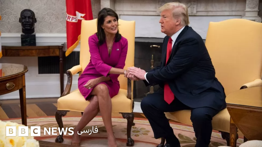 توضیح تصویر، نیکی هیلی، سفیر سابق ایالات متحده در سازمان ملل، می‌گوید که دونالد ترامپ را برای نامزدی جمهوری‌خواهان در انتخابات ریاست جمهوری ۲۰۲۴ به چالش خواهد کشید