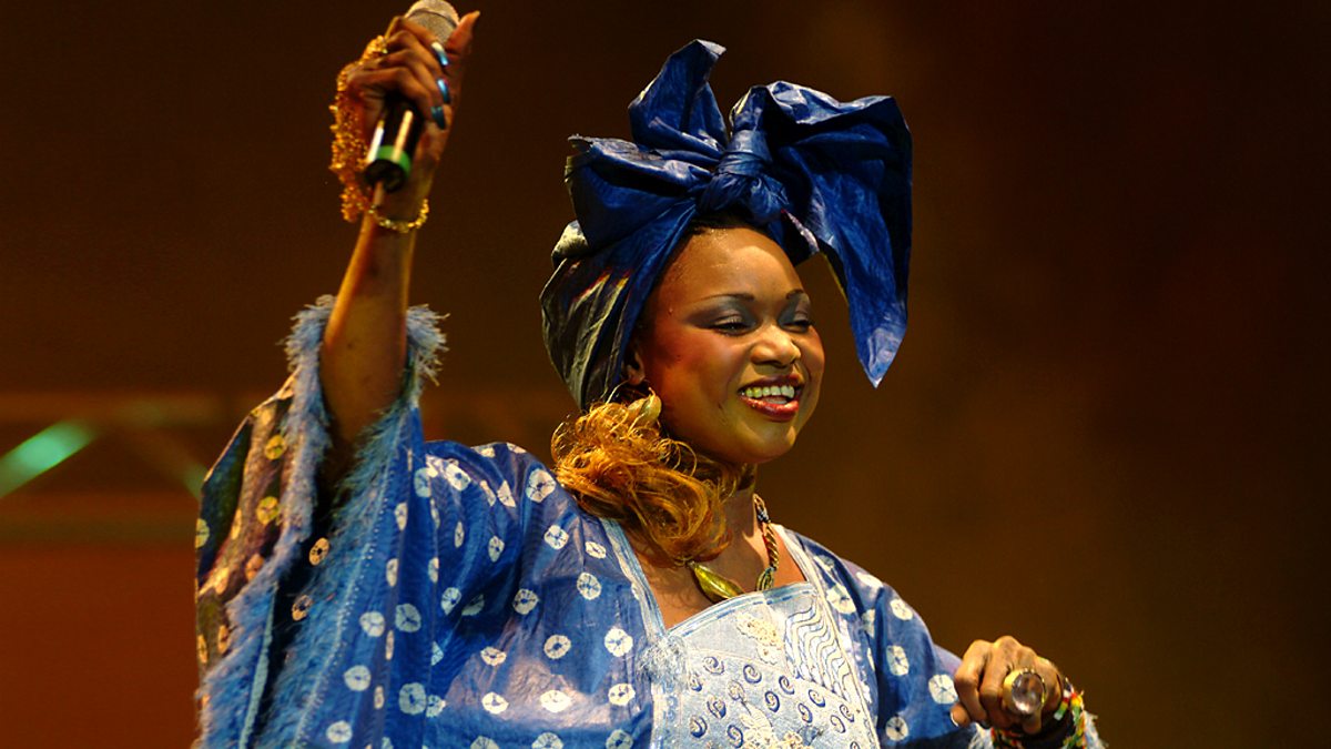 Oumou Sangare and her vibrant band of musicians and dancers delight the Festival audience with their bold, seductive and funky take on traditional Malian music.