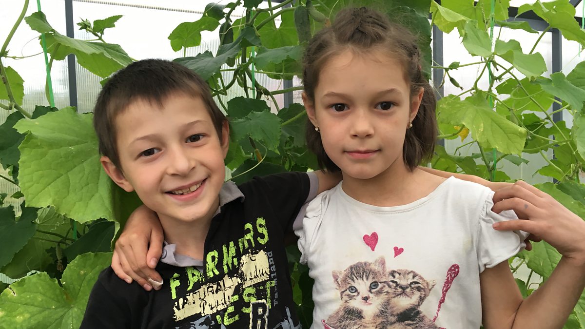 And in Russia, Liza and her twin brother Styopa are helping to bake an apple cake for their baby sister's birthday.