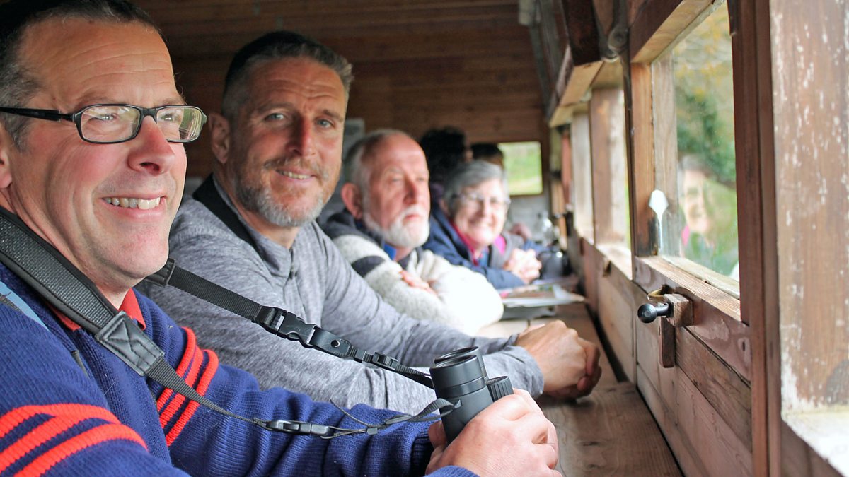 Iolo Williams a'i westeion ar ymweliad ag Ynys-hir, gwarchodfa natur yr RSPB rhwng Machynlleth ac Aberystwyth. Iolo Williams and guests visit Ynys-hir, an RSPB nature reserve.