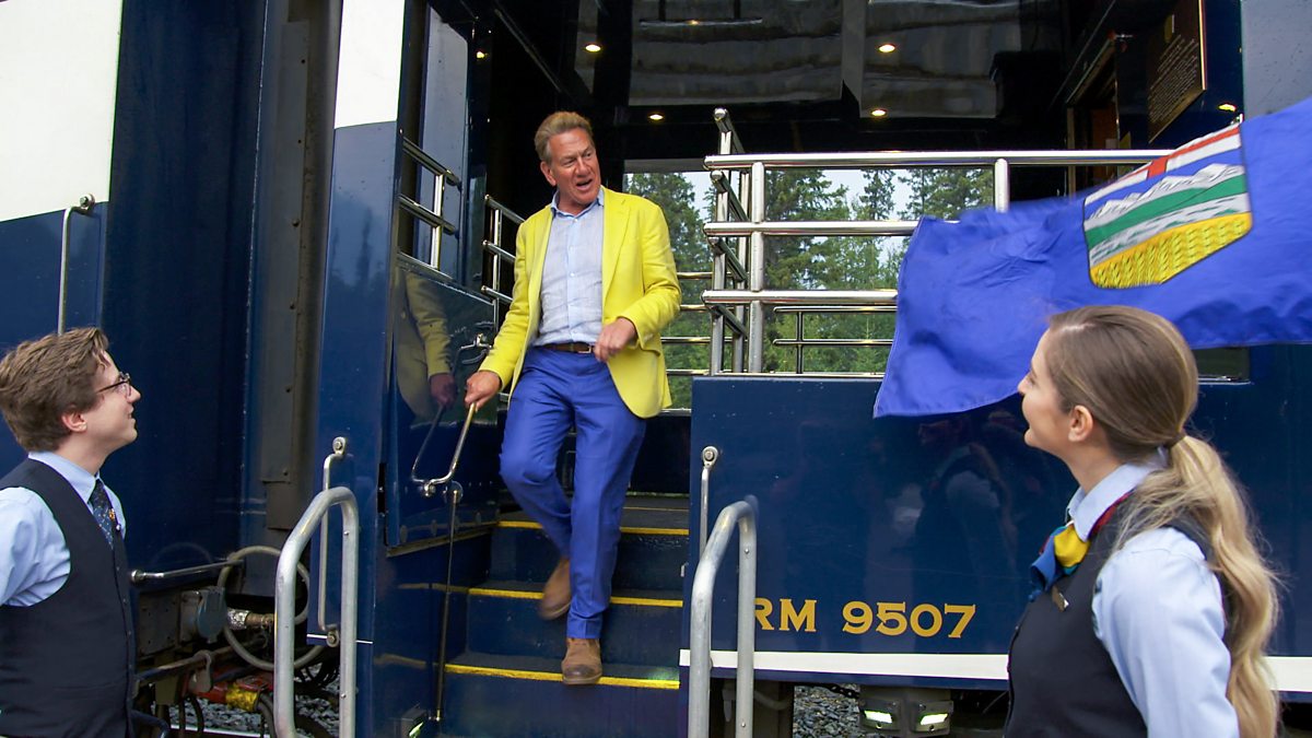 Armed with his 1899 Appleton's Guide to Canada, Michael Portillo learns how to head off a charging bear in the wilderness of British Columbia and holds on tight in a sidewinder while Canadian lumberjacks nudge tons of logs along the water to a sawmill.
