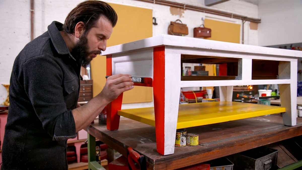 Today, Alan Titchmarsh returfs a lawn, Joe Swift and Carol Klein reveal their favourite tools for gardening, and Sarah Moore enlists Daniel Heath to create a bespoke dining table using reclaimed gym flooring. Back in the workshop, Jay and Dom’s imaginations are put to the test when they make different versions of kids’ furniture. In today's Top Tips, Dom uses fringing to revamp an old lampshade, and Jay makes a simple key holder.