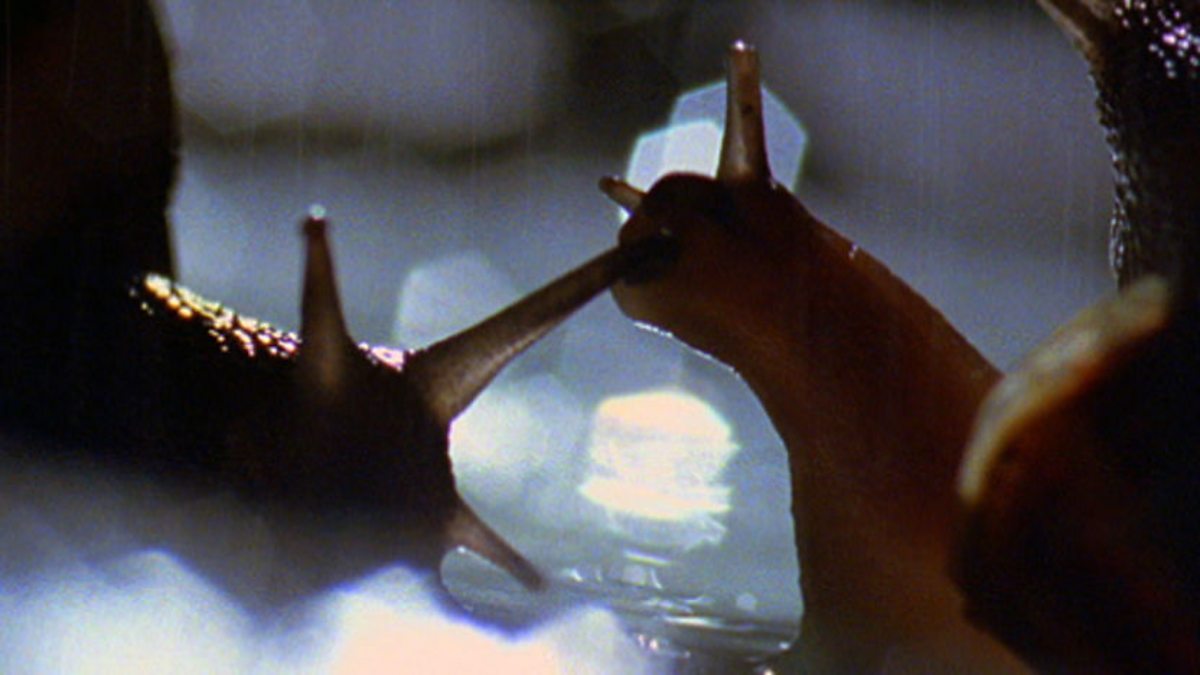David Attenborough explains how the shells of snails pre-adapted them for life on land. Snails like wet conditions, and head off looking for food when it rains.