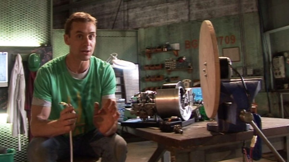With his homemade flywheel, Jem shows how F1 engineers have adapted an old technology for high performance race cars.