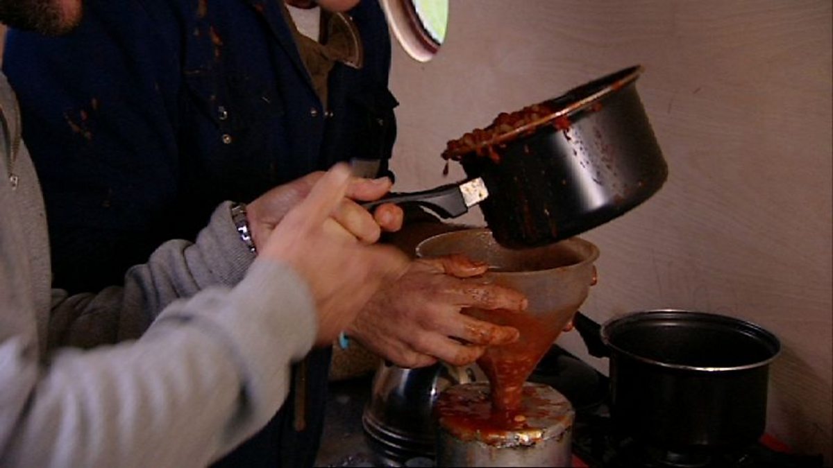 Canning food is a British invention and Guy and Mave make a tin of baked beans in a traditional, and very messy, way.