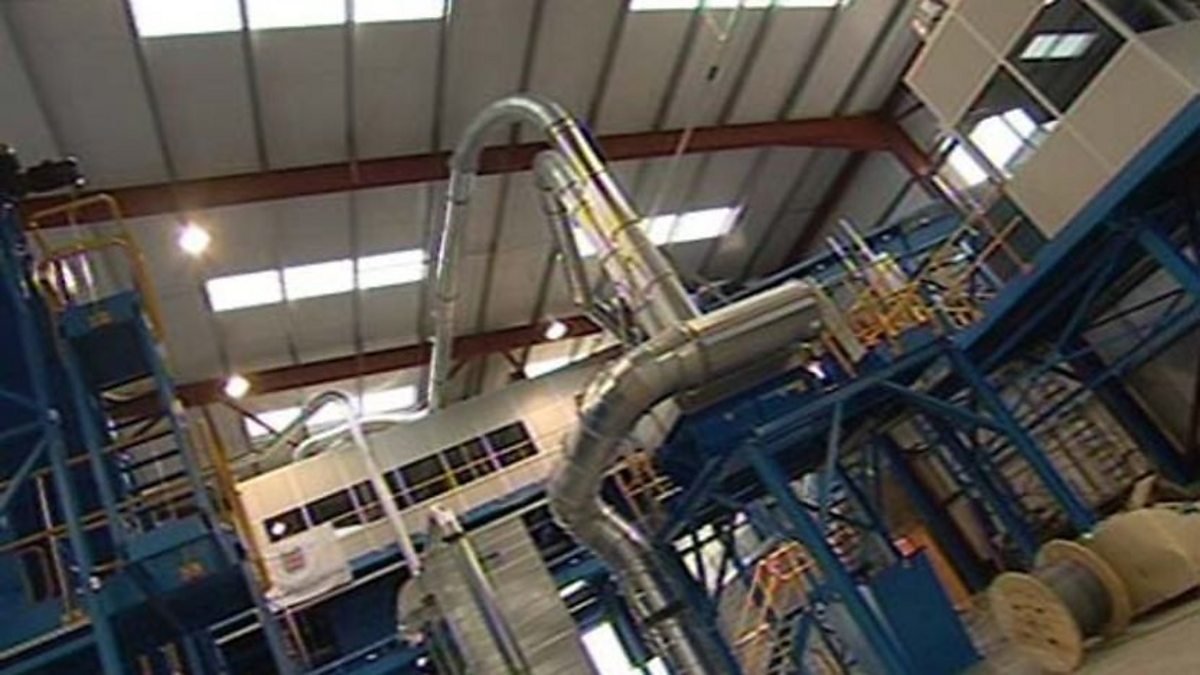 Showing a new recycling plant in Cardiff, as it came on stream in 2006, and exploring the processes envisaged in the plant to reprocess the city's waste.