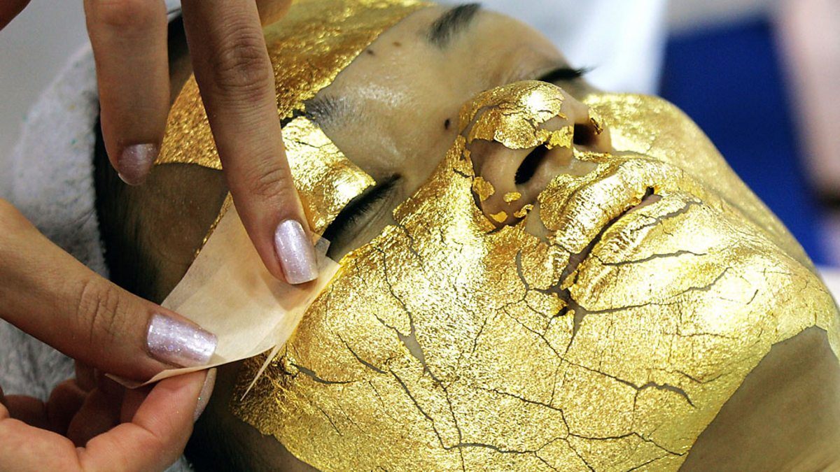 (Photo: A woman is covered with sheets of 24-carat gold, said to be effective for anti-aging care. Credit: Getty Images)