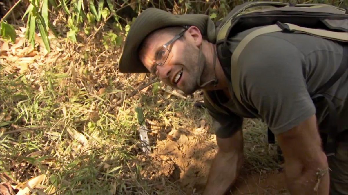 While searching for elephants 8 miles from basecamp zoologist Ross Piper investigates a dung beetle burrow and gets quite a surprise.