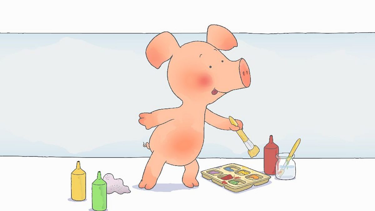 Mae Wibli yn brysur yn peintio - ac mae wrth ei fodd yn dewis y paent ac adnabod y lliwiau. Wibli is busy painting - he loves choosing the paint and naming the colours.