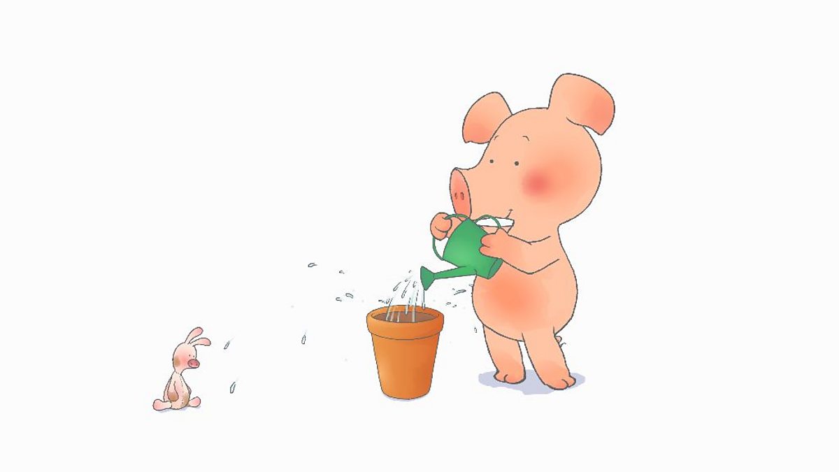 Heddiw mae Wibli yn garddio. Mae wedi penderfynu plannu hadau mewn pot. Wibli is gardening. He decides to plant a seed in a pot but it takes a very long time to grow and he is impatient.