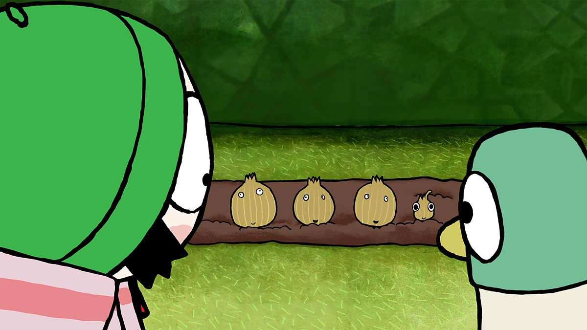 Mae Sara yn plannu hadau yn yr ardd gyda Cwac. Wedi aros am yn hir, mae yna nionod bychan yn ymddangos. Sara plants seeds in the garden with Cwac. After a long wait, little onions appear.