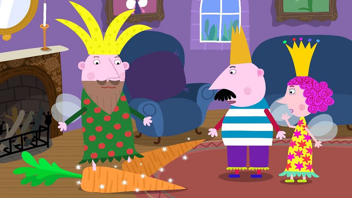 Pan ddaw'r Brenin a'r Frenhines Aur i ymweld â'r Brenin Rhi, does dim byd ganddo i wisgo! King and Queen Marigold are coming to visit but King Rhi's clothes have shrunk - what can he wear?