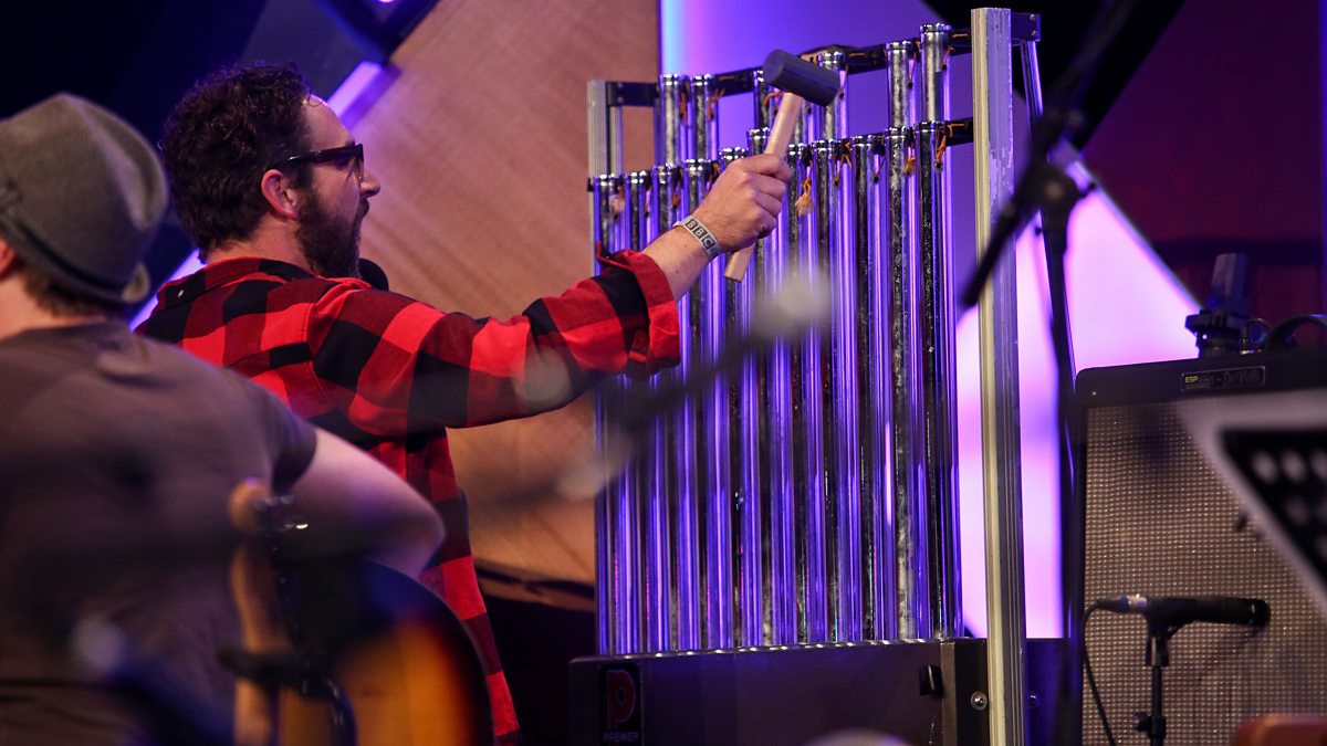 Aiden Roberts and Daniel Holdsworth perform Tubular Bells for Two at the BBC Blue Tent