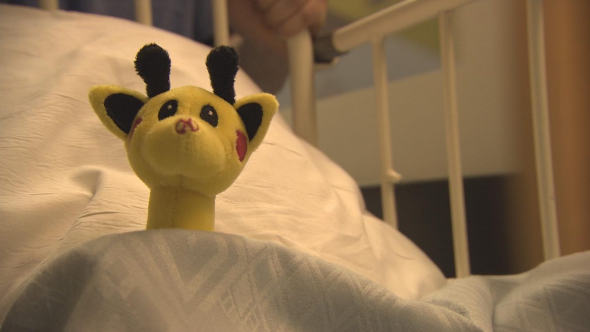 Mae Llew yn sâl yn ei wely ar ôl bwyta rhywbeth sydd wedi ei wneud yn dost. Llew is ill in bed after eating something that has made him feel unwell.