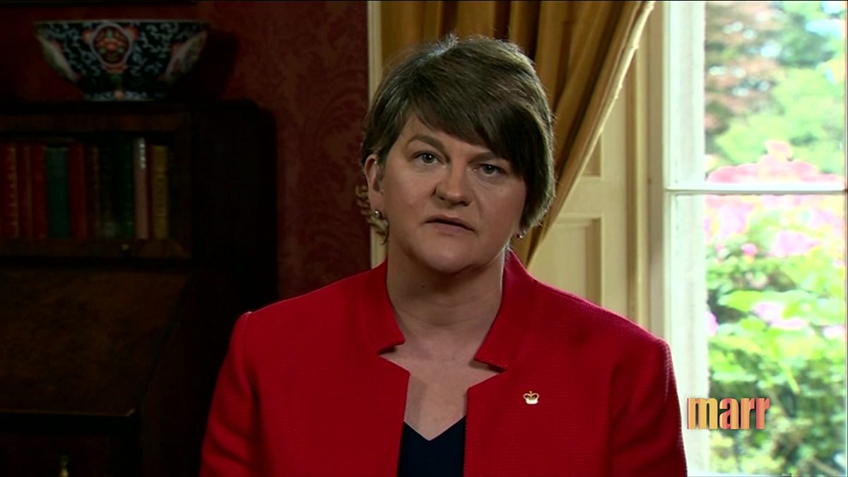DUP's First Minister Arlene Foster has told Andrew Marr that Northern Ireland peace process is not based on the EU "in any way".